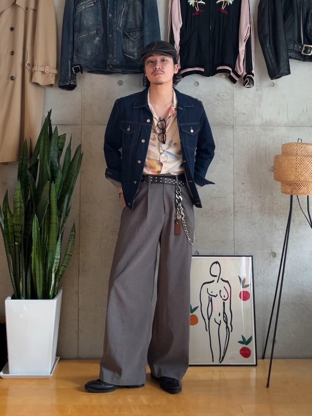 Takeru.のスラックス「VICTIM ヴィクティム / BUGGY SLACKS バギースラックス / VTM-24-P-004」を使ったコーディネート