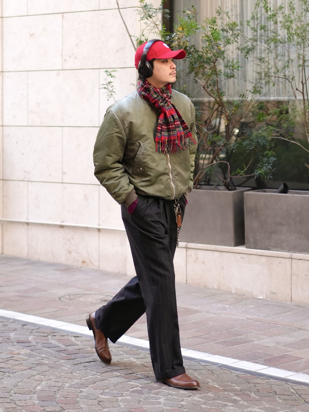 クリスマスカラーでまとめた冬スタイル⛄️ ポイントは 野暮ったいアイテムの中に差し色を加えてメリハリをつけてみました👌