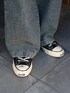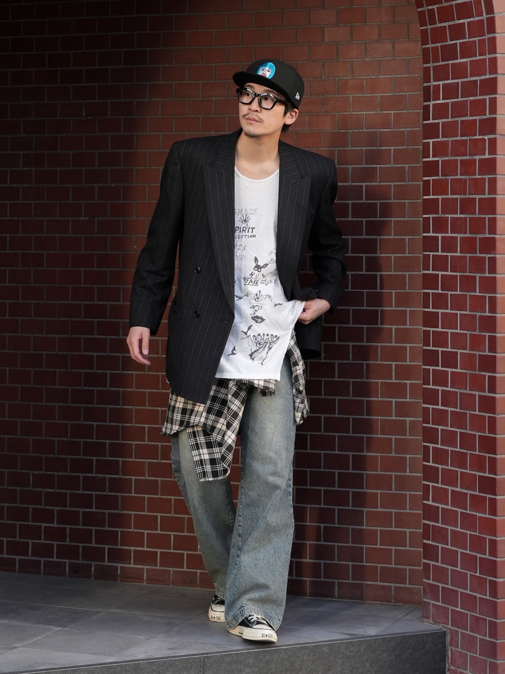 春感も意識したテーラーJKにデニムのスタイル👌 シンプルすぎるのは苦手なので インナーやチェックシャツを腰巻きしてワンポイント◎