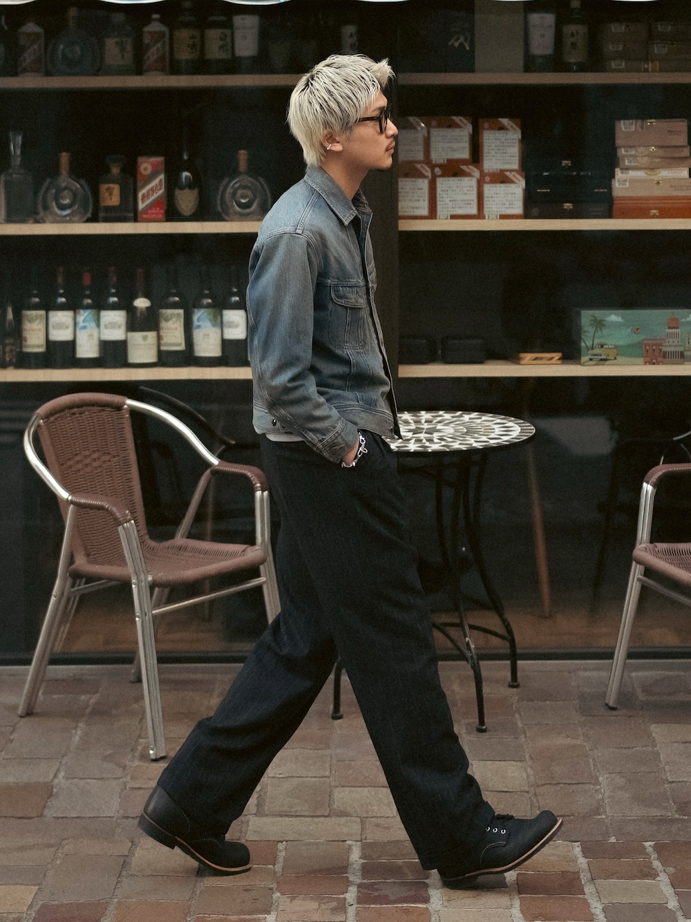 発色の良いブルーのウォッシュデニムJKTを使った、大人スタイル🚶🏿 チラ見えするスウェットがいい塩梅に◎