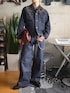 セットアップ風にまとめたデニムオンデニム🚶♀️ インディゴでまとめたので、 少しトーンも落ち着き大人っぽく◎