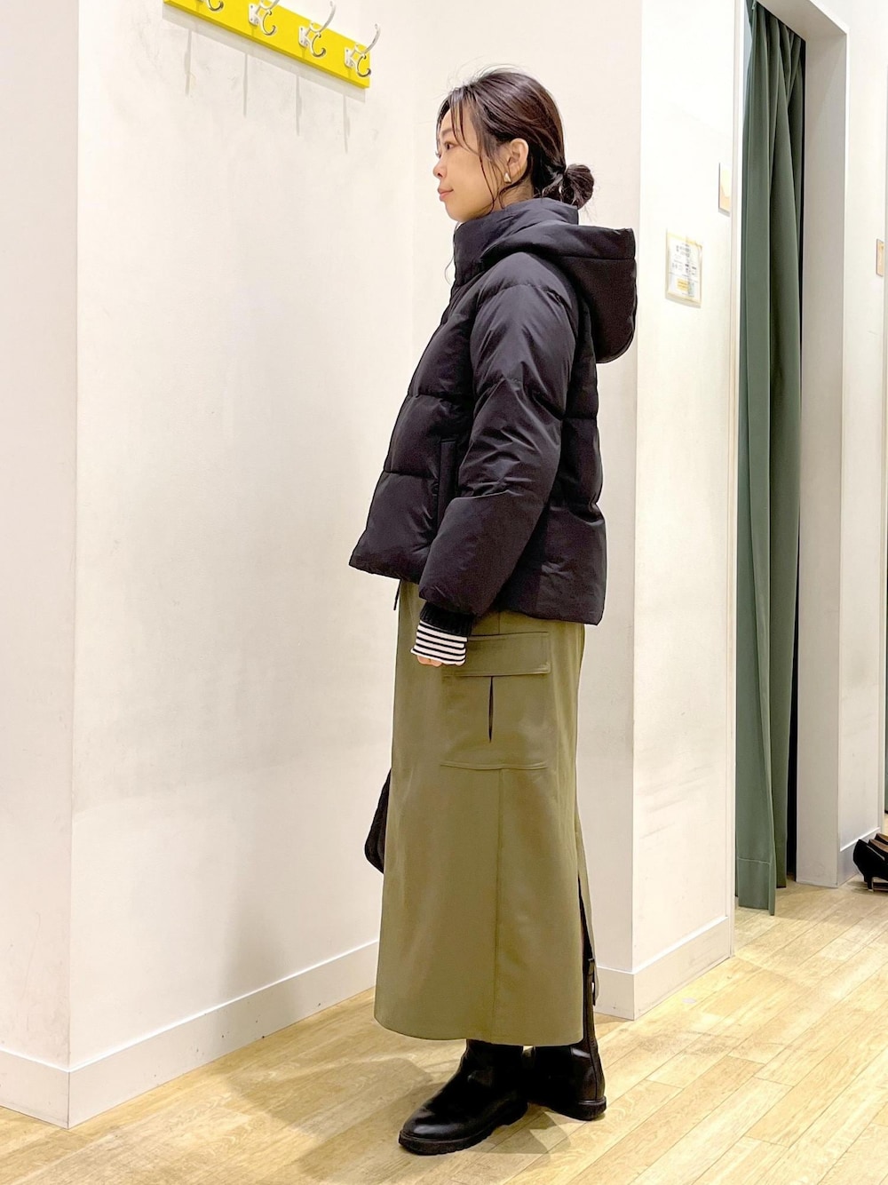 すっきりみえるショート丈ダウン。 上まで閉じた時のシルエットも可愛くて ストール要らずで防寒もできます◎