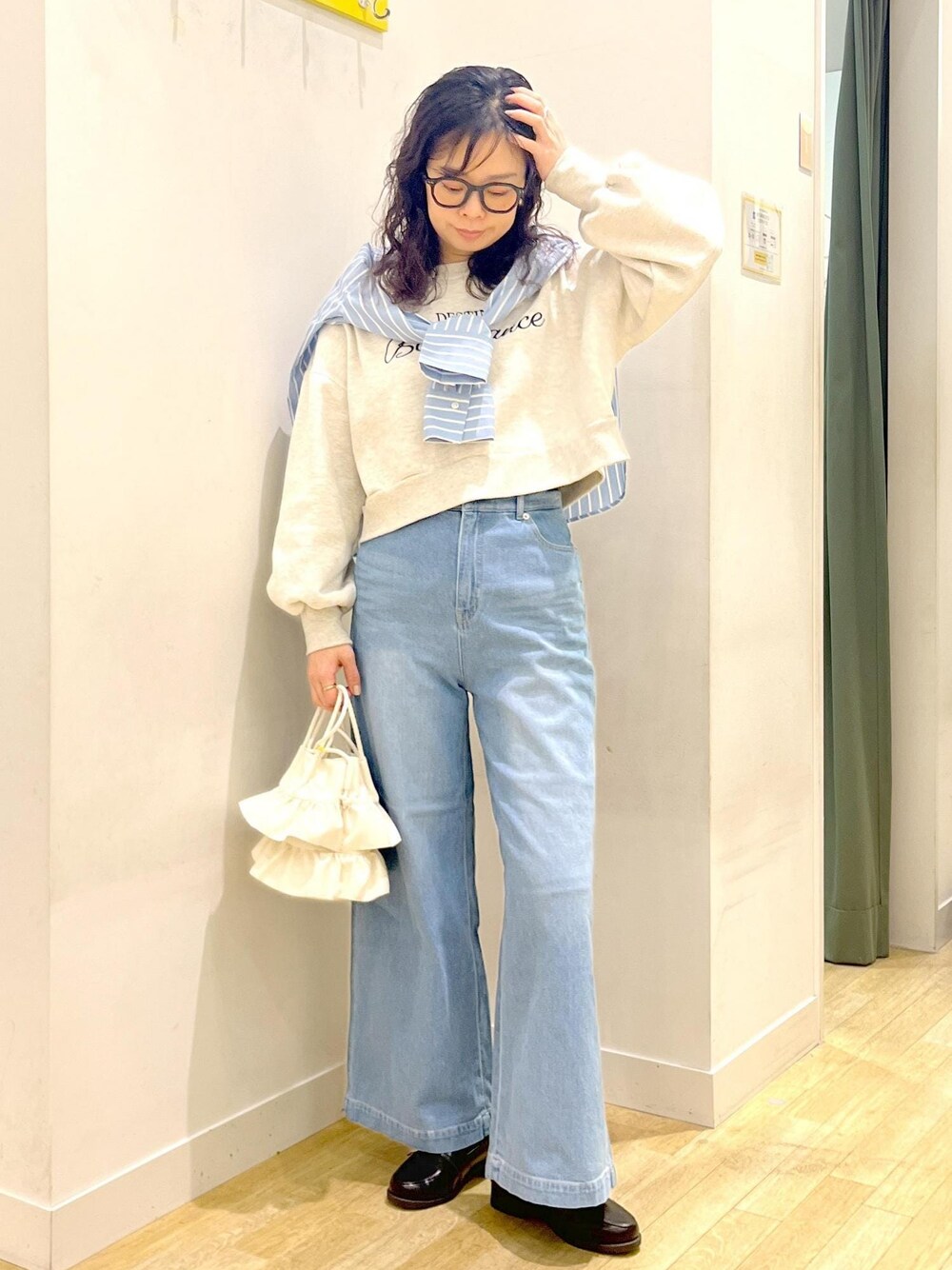 2024SS新作のデニムを履き比べました! こちらはワイドパンツ 太ももからスッキリ伸びるラインでふくらはぎまできれいにカバーしてくれます。 カービータイプに比べてワイドタイプのウエストがきつめの印象なので試着をおすすめします。