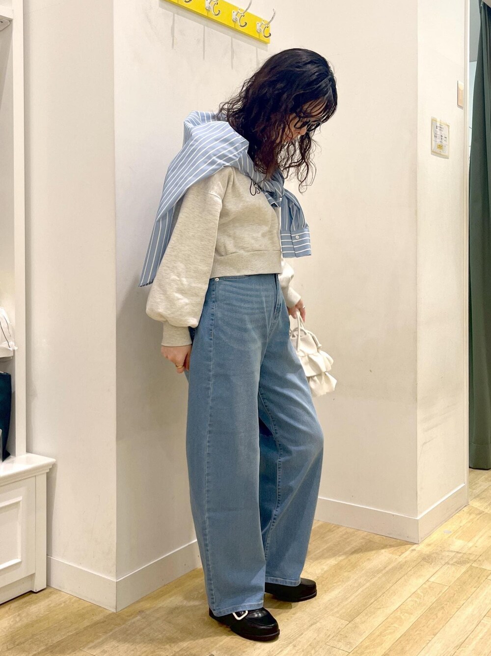 2024SS新作のデニムを履き比べました! こちらはカービータイプ。 私のお腹ぽっこりを綺麗にカバーしてくれます。 丸みがあってかわいいので カジュアルなスタイリングが好きな方におすすめです。