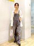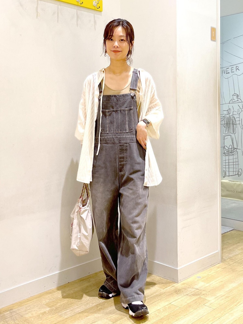 大好きなオーバーオール。 首の空いたインナーと透け感のある羽織りアイテムと組み合わせて カジュアルすぎないコーデにしました!