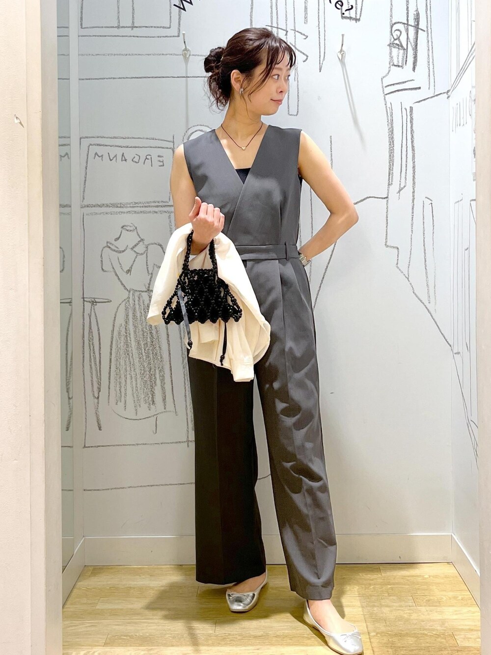 きちんと感のあるオールインワンを1枚でさらっと。 ちょっとした夜のディナーなどにもおすすめです!