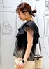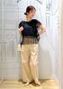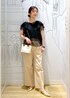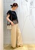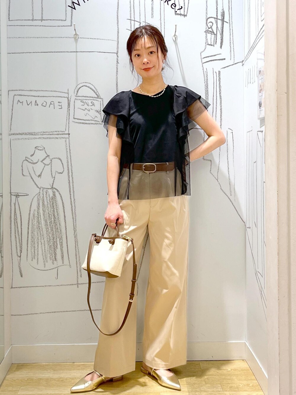 フリルがかわいいカットソーを 大人カジュアルにパンツ合わせでコーディネートしました。