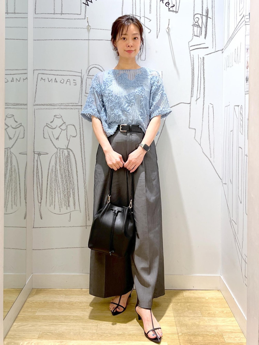 甘くなりすぎないレーストップス! パンツ合わせでカッコよくオフィスカジュアルにも使えるコーディネートにしてみました。
