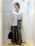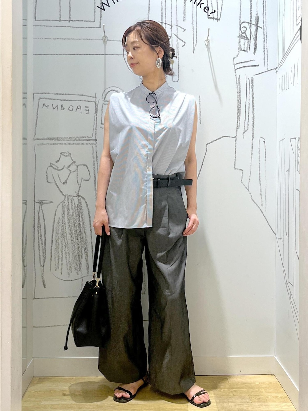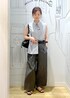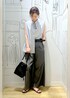 体型カバーのできるシャツを 前の片側をインスタイルにして スタイルアップしてみえるようにコーディネートしました!