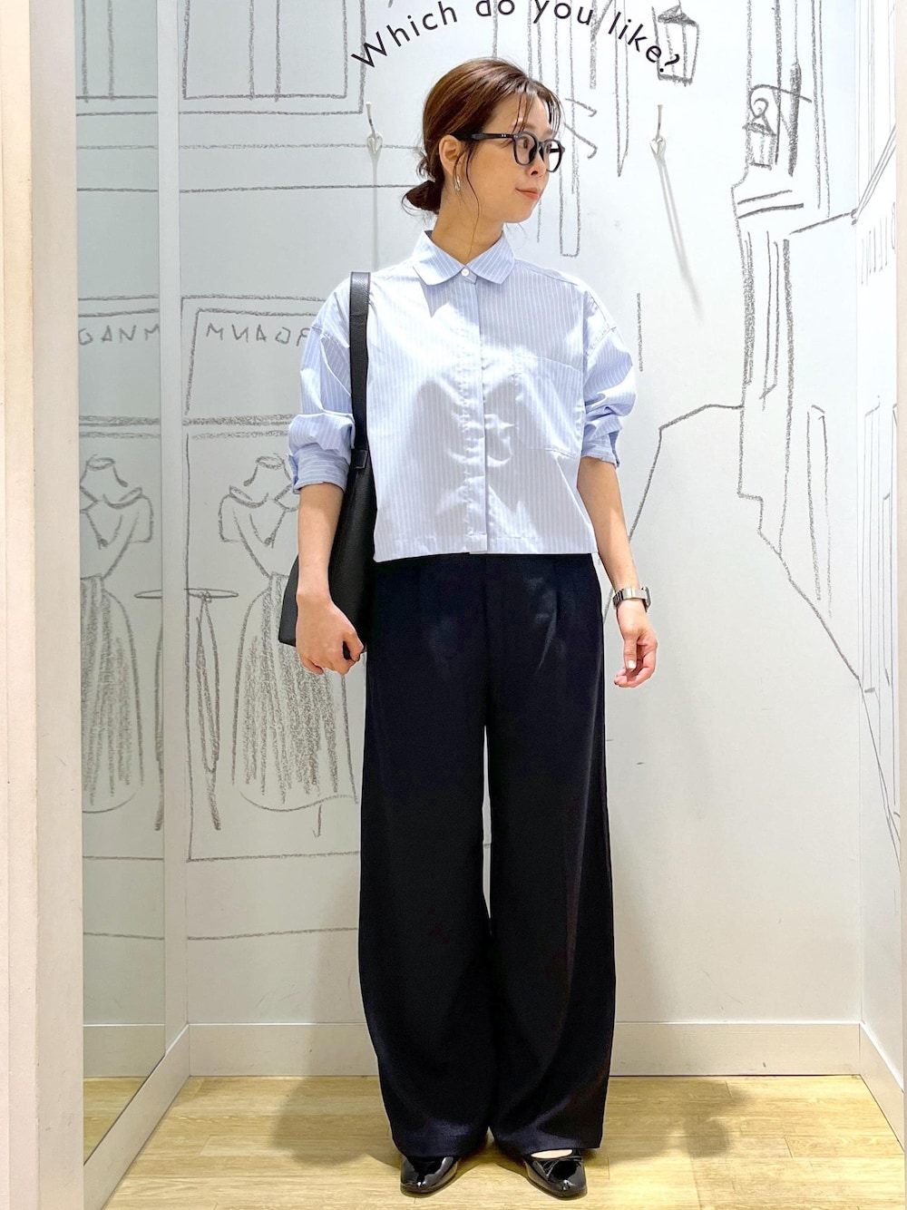 丈長めパンツ出ましたっ 人気のレディハンサムシリーズより登場した丈長めパンツを シャツでシンプルにコーディネート。 シャツはバックのダーツが可愛く、シンプルながら存在感あり◯ パンツはこれぞというすれすれラインくらいの長さがカッコ良いです!