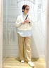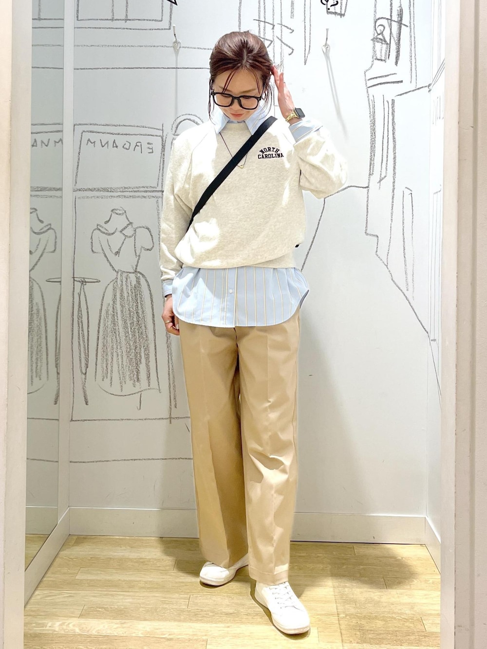 シャツレイヤードでこなれる大人カジュアルスタイル。 スウェットのラフさにストライプシャツを重ねることで、きちんと感をキープ。 デイリーからお出かけまで幅広く活躍します。