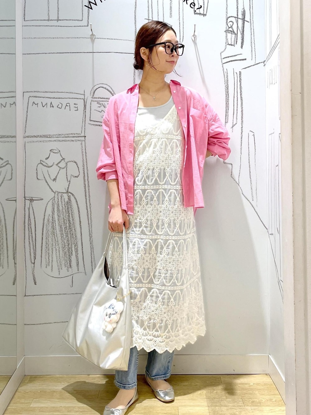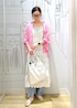 さらっと羽織るだけで春らしさが引き立つピンクシャツ。 レースアイテムと合わせて、軽やかで優しい印象に。 甘くなりすぎず、デイリーにも取り入れやすいバランスがポイント。
