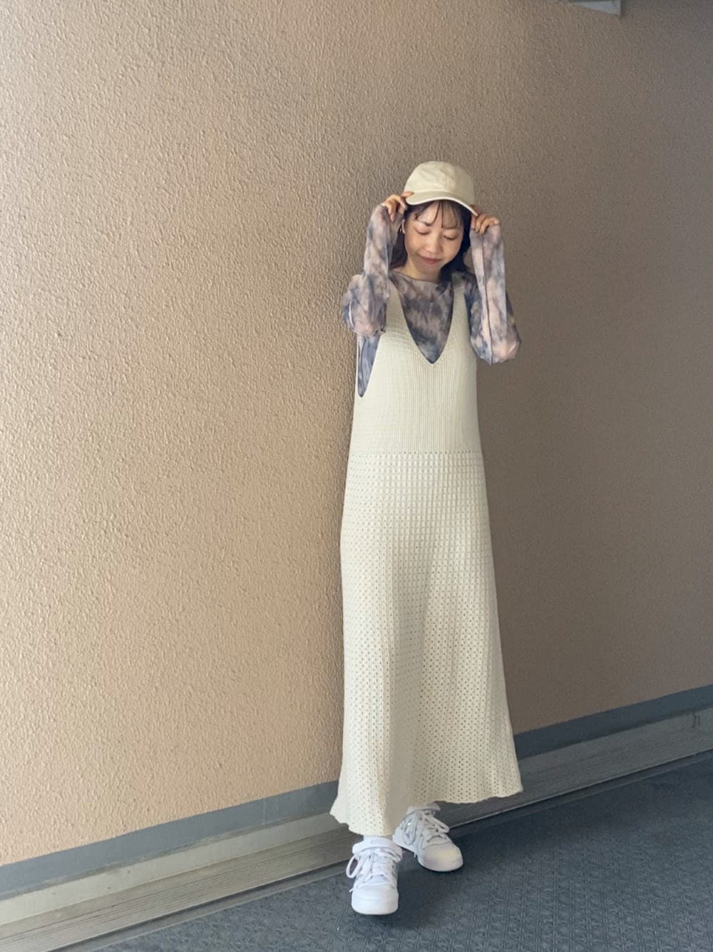 .のワンピース「透かし編みニットキャミワンピース」を使ったコーディネート