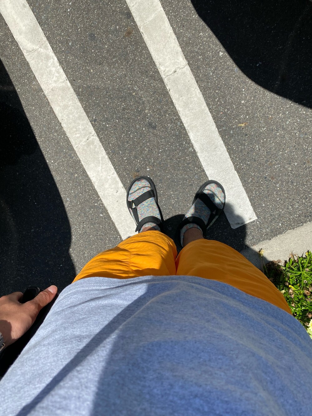 晴れた日はマンゴーを着たくなる🥭 サンダルには靴下を履く派です。