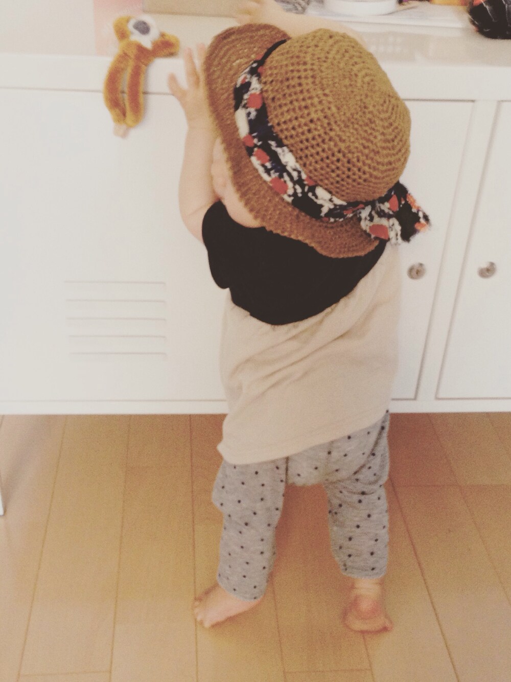 保育園に行き始めてから 娘の写真が全然撮れない〜。 ばーばメイドの麦わら帽子♡ 夏に活躍しそう!