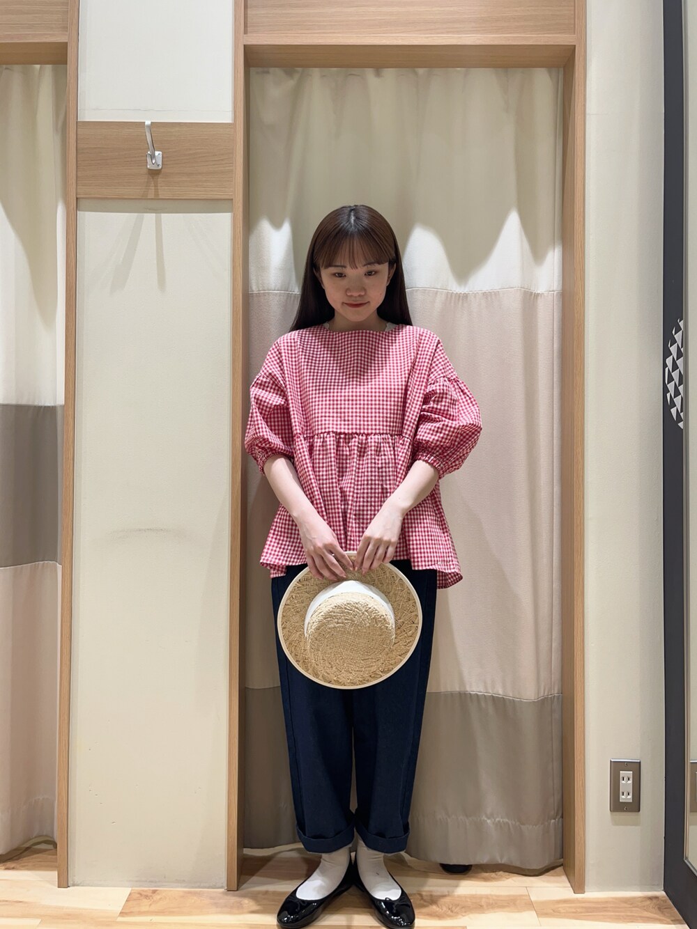 shioneのシャツ/ブラウス「◎ギンガムギャザーブラウス」を使ったコーディネート