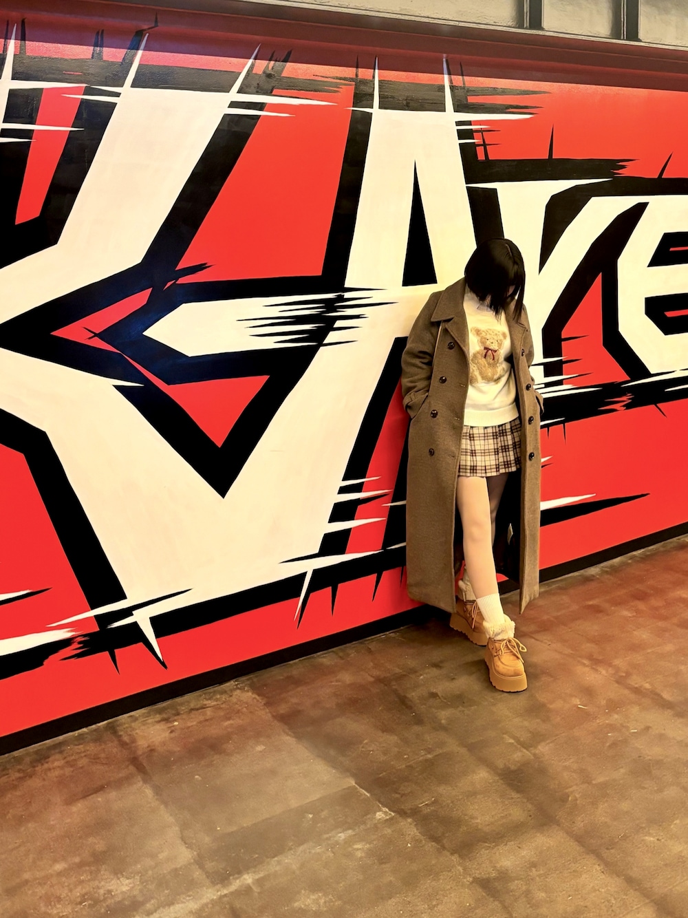 見えにくいけど付け襟つけて ダボッとしすぎないように意識! ニットはXLで袖と丈感に余裕を持たせて 少し抜け感! ムートシューズを履きたいがための コーデを組みました✨️笑