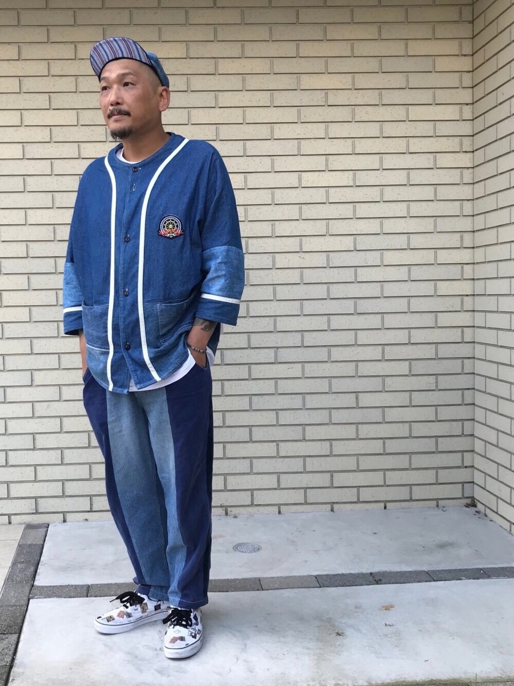 GO!DON別注-BB Re ☆Denim VintageのOVERALL+6ozのデニムのミックスで制作したドルマンスリーブのBASEBALL SHIRTS. ライトオンスのデニムを使用しているので落ち感も有り、デニムの無骨な感じと今っぽさのダブルパンチです。 勿論こちらも全て1点ものです!!!