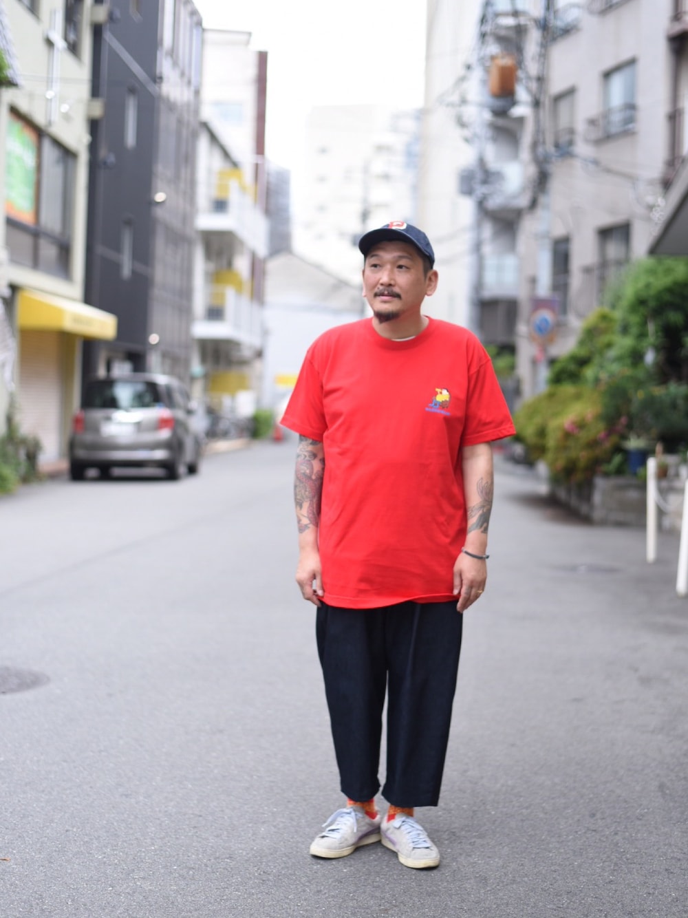 赤と黒で合わせて着ました。 ボトムは涼しい素材。 Tシャツはビールをモチーフにしたもの。 なんとなく夏らしく。