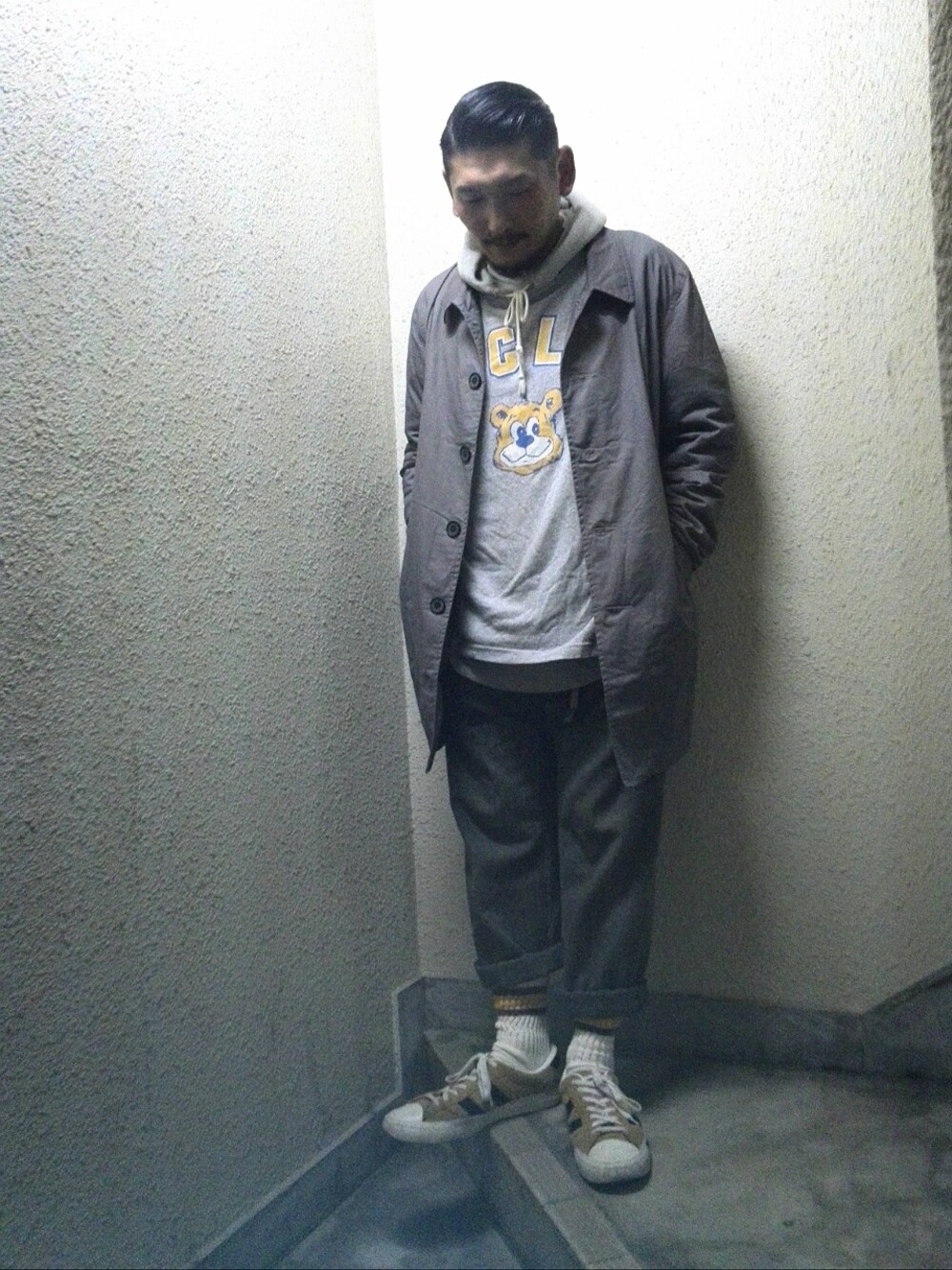 こんばんわ♪ ワントーンコーデ、全く思いつかず、悩んだ末に 自分なりのワントーンコーデにしてみました。 全体をグレーで統一、インナーのパーカーが地味なプリントなので、パーカーの上にTシャツを重ね着しました。ワントーンと言っておきながら、悪い癖でプリントの黄色とベルト&ソックス&靴の色合わせてしまいました。スミマセン(*≧∀≦*) こんな感じですが、宜しくお願い致します✌