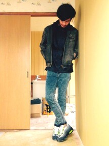 こんにちわ♪ またまた、デニデニです♪今回はインディゴ同士で合わせてみました。インナーはパーカーonTシャツでプリントの色と、ソックス、スニーカーを合わせてみました☺ こんな感じですが宜しくお願い致します♪♪♪
