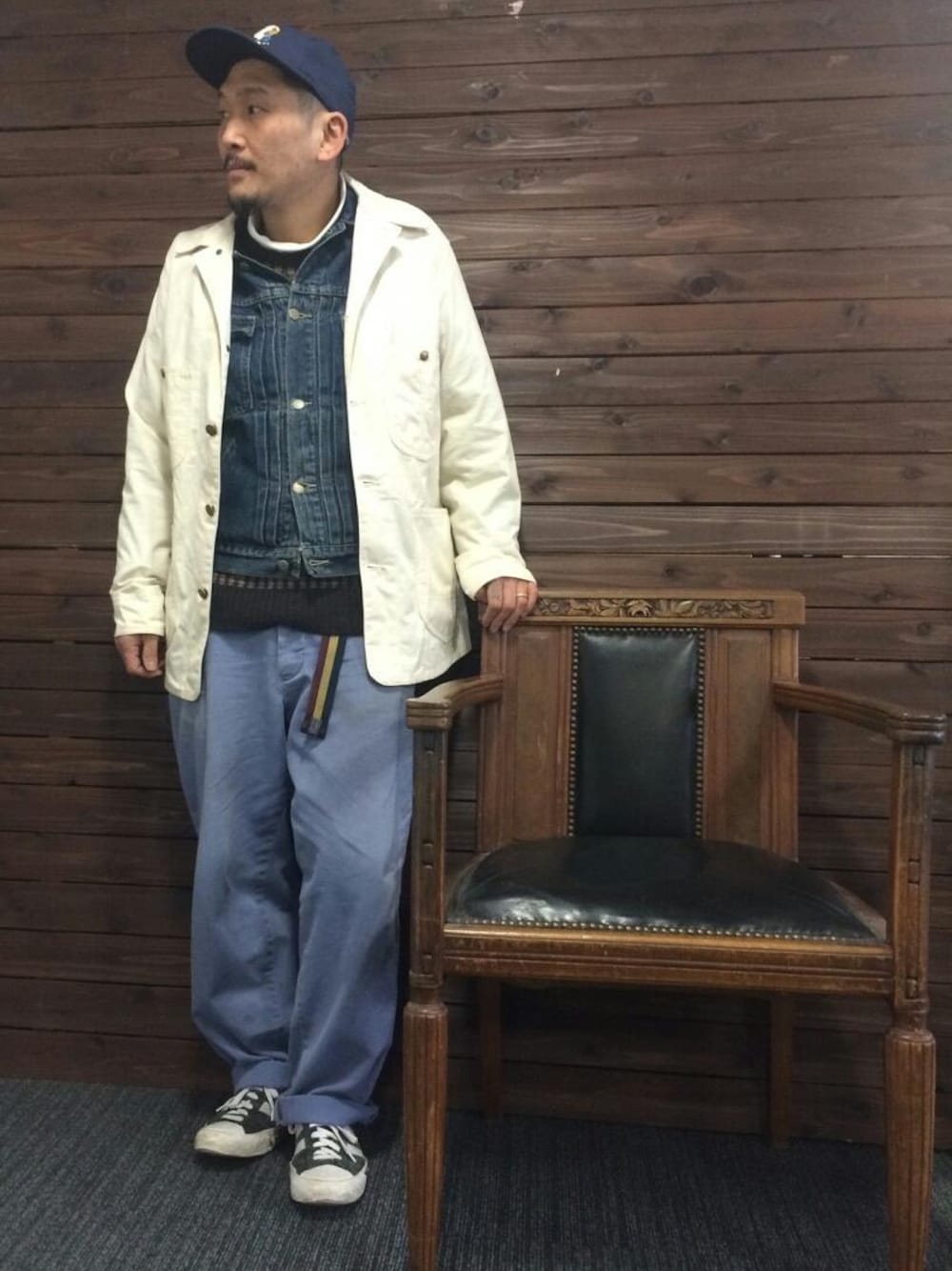 こんにちわ♪♪ ニット×デニムのタグに乗っかってジージャンに千鳥格子柄のニットを合わせました。明るさが欲しくてカバーオールとインナータートルを白で統一。 ボトムはサックスブルーのカラーチノで合わせて春っぽしました。 こんな感じですが、宜しくお願い致します!!