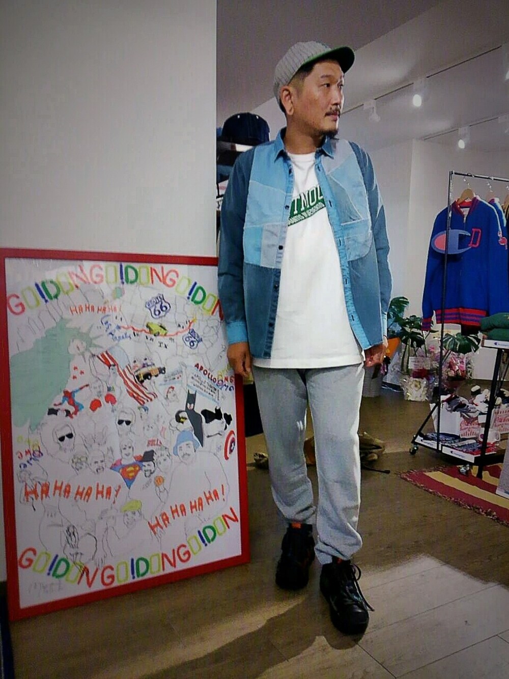 こんにちわ♪♪ 先日はお陰様で無事にオープンできました。 WEAR でも仲良くさせて頂いてる方々、たくさん来て頂きホント感激しました。 むちむち729さん、Fuzee さん、masakiさん、あきさん、八さん、kazoo さん 本当にありがとうございます!!! 今回のコーデはmasterkey のデニムシャツにスウェットパンツを合わせてみました。 WEARでも大人気のイシバシトモヒロさんが手掛ける「masterkey 」は僕の店GO! DON でも取り扱わせて頂いております。 masterkey デニムパッチワークシャツ ¥20520 Champion スウェットパンツ ¥10260 GO! DON にて販売中♪