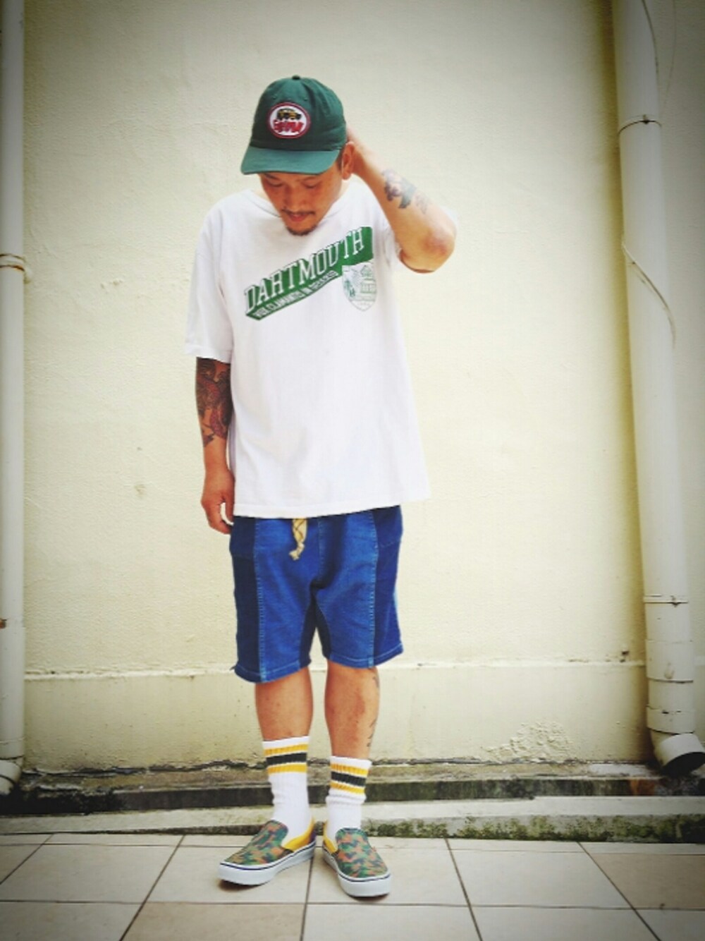 こんにちわ♪♪ デニム×白×緑×黄色で合わせてみました。 masterkey とのコラボ短パン、履き心地が良すぎて履き散らしてます(笑) こんな感じですが宜しくお願い致します☺ instagram→GODON4OPE