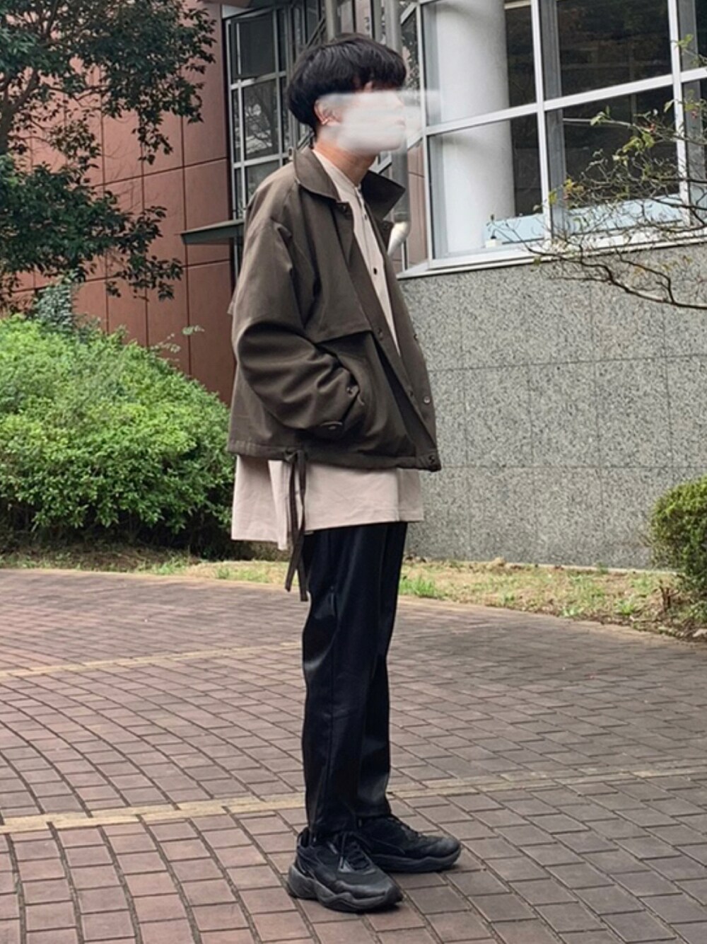 レザーパンツにバンドカラーシャツ と、トレンチジャケットを合わせたモードなスタイリング。 個人的にカジュアルなブルゾンにシャツを合わせたレイヤードが好み!