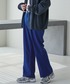 ブラック✖︎ブルー デニムジャケットを綺麗目に合わせたコーデ。 綺麗目によせるためにトレンドのブルーのスラックスとレザーアイテムで印象をクールに! monomartのカラースラックスはプチプラで生地もしっかりしていてフレアワイドでトレンド感○
