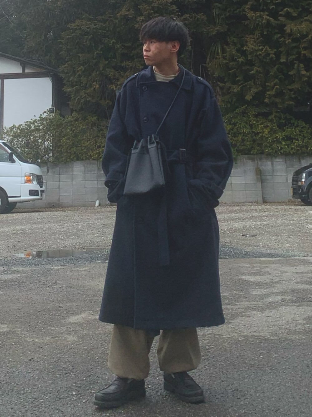 Kaiseiのステンカラーコート「ウールライクメルトンルーズステンカラーコート」を使ったコーディネート