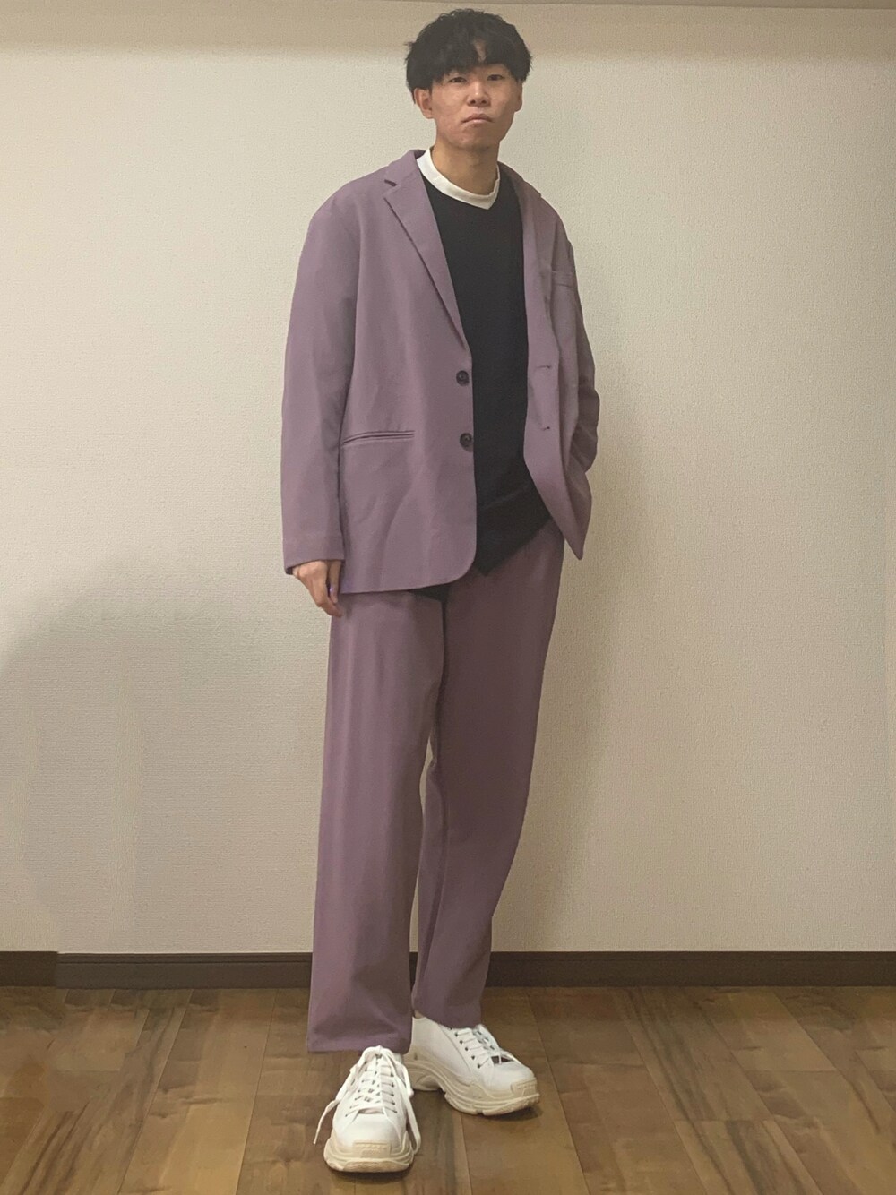 春らしいラベンダーカラーのセットアップ! (point) 今季注目されているパープルぽい感じの色合いが好みです!トップスは前後着れる2wayのスウェットを着用してます!スニーカーは白スニーカーで! 色味が強い物はモノトーンで合わせるとしっくりきます! このコーディネイトがいいねと思ったら👍やフォローの方よろしくお願いします🙇♂️