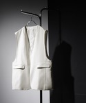 TR素材ジレとワイドデニムで合わせた異素材のホワイトコーデ。ロゴTとスクエア型のバックでワンポイントに! 足元はトングサンダルでカジュアルに!