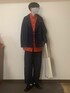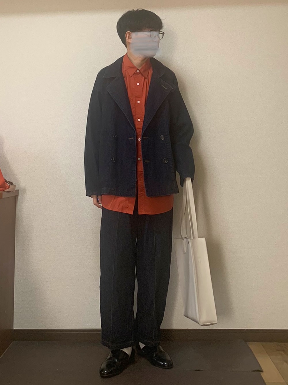 デニムセットアップコーデ。 デニムのステッチの色に合わせでオレンジのシャツを合わせました! 原色系の色味が強いアイテムも見える面積を狭くしてあげるとコーディネイトのアクセントとして馴染みやすいです!!