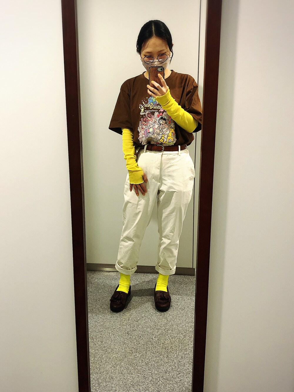 まるで全身タイツを着ていそうな靴下と、トップスのインナー🟡🟡