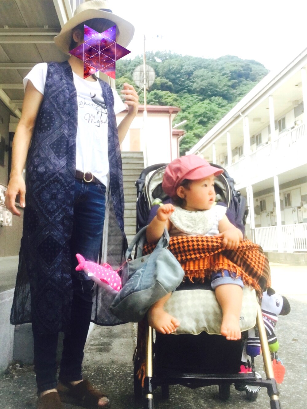 しまむら安心価格♡ロングジレ♡ フラミンゴのTシャツとセットだた\(^o^)/ 娘のキャスケット帽は 叔母さんに作ってもらったよ〜♡♡♡ あと、 今日GUでブラフィールまとめ買いしてきた!