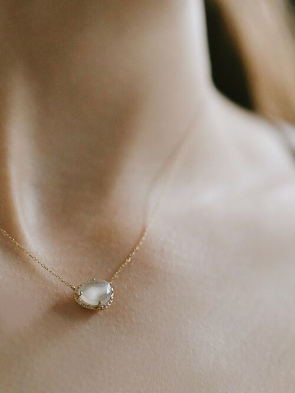 Ops Accessoryのネックレス「10K Moonstone Diamond Pave Necklace -Proprium nebula- プロプリウム ネブラ」を使ったコーディネート