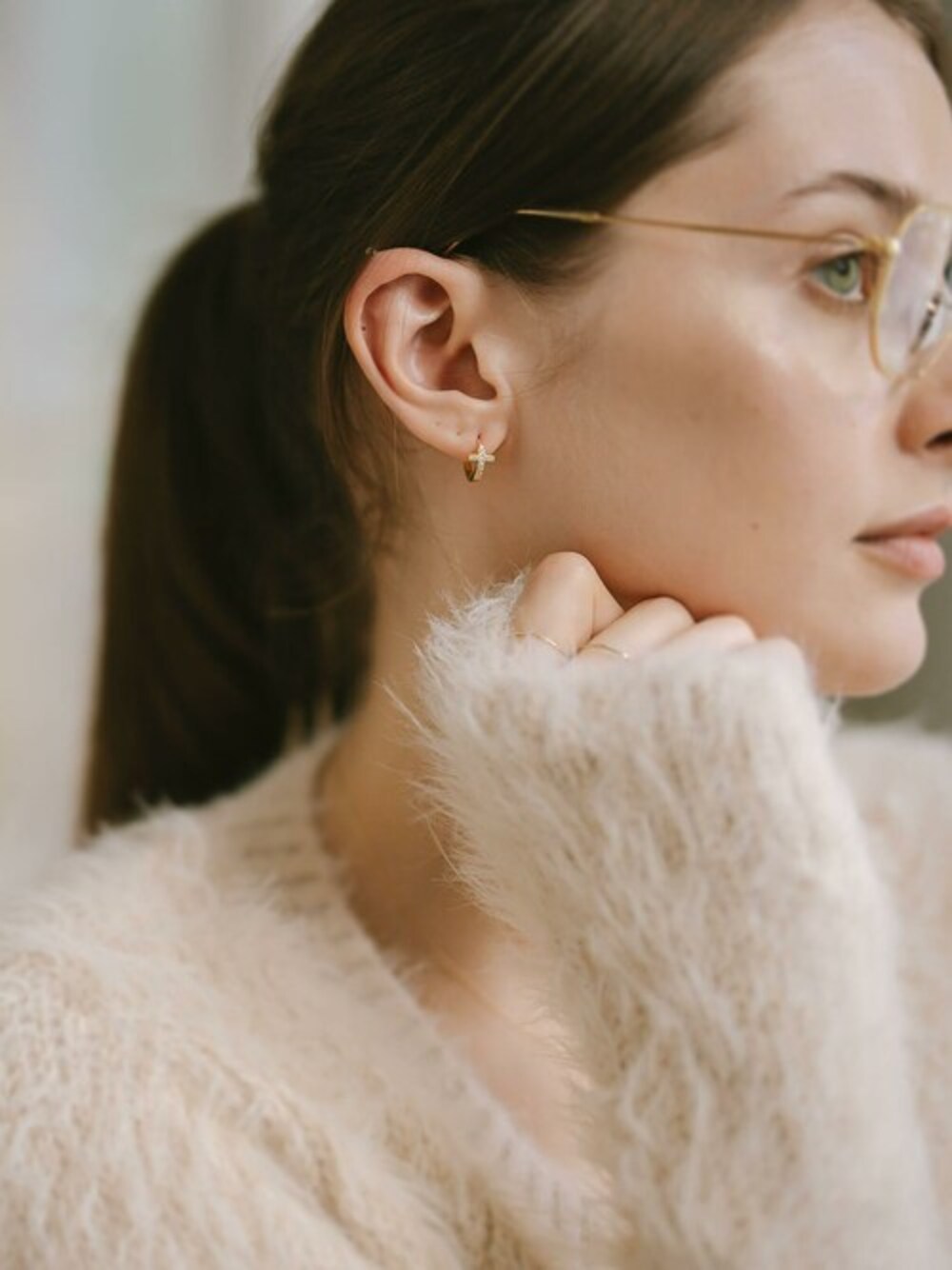 Ops Accessoryのピアス(両耳用)「フープピアス 小さめ ジルコニア クロス KYKLOS-CROS CV PAVE HOOP PIERCE -キクロス クロス-」を使ったコーディネート