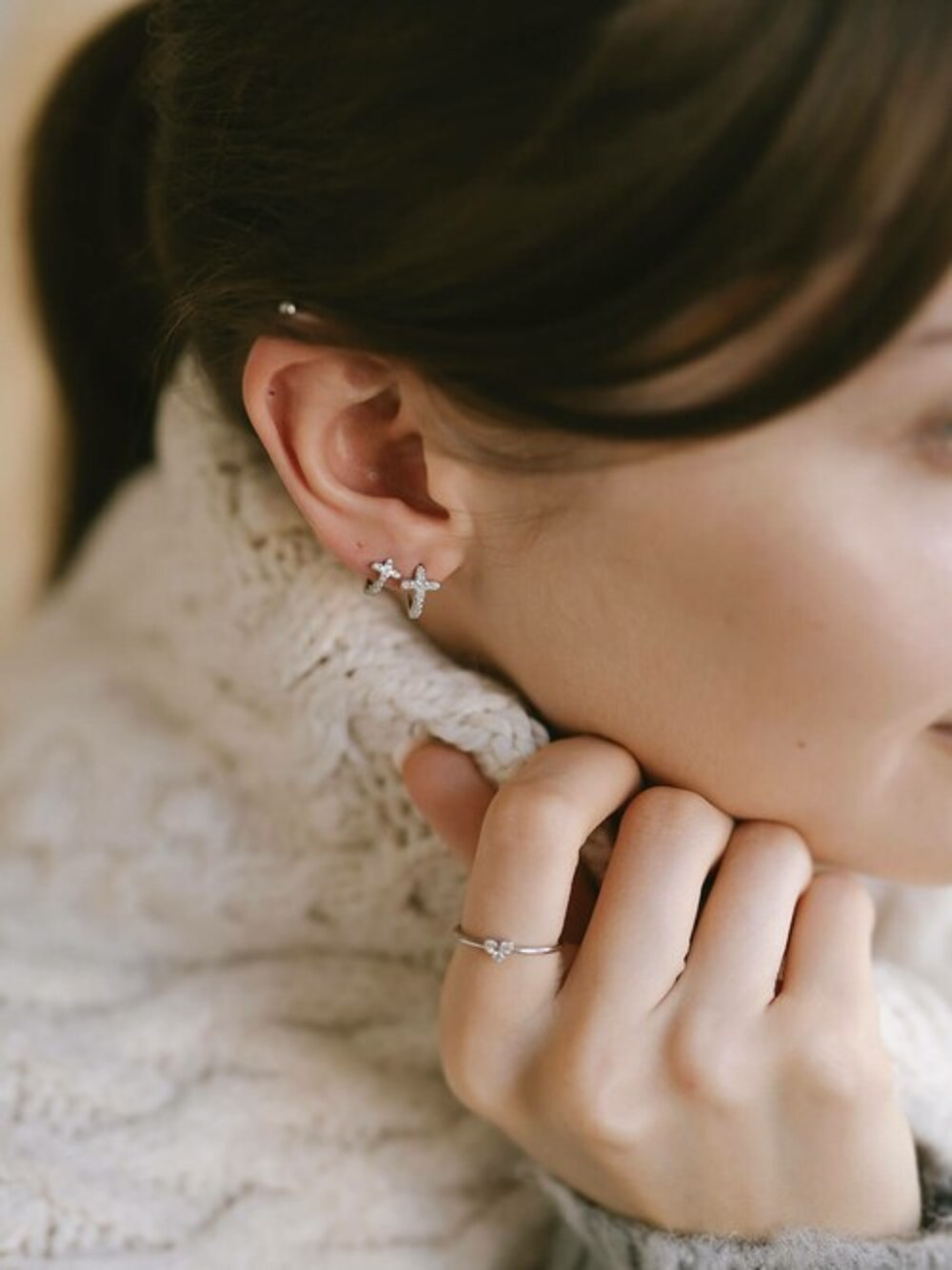 Ops Accessoryのピアス(両耳用)「フープピアス 小さめ ジルコニア クロス KYKLOS-CROS CV PAVE HOOP PIERCE -キクロス クロス-」を使ったコーディネート
