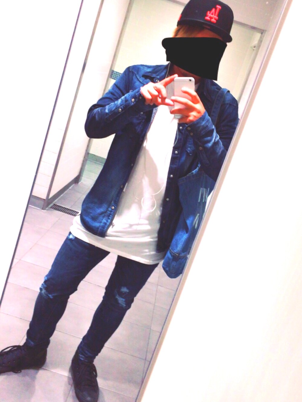 久々の投稿 アメリカンイーグルのデニムパンツ2着以上買うともらえるバッグギリギリゲットできました! 全身デニムにしてみました笑