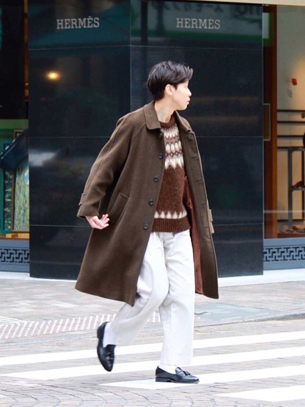 Instagram → ryu__wear__ (_2つずつです) 最近はInstagramに力を入れているので、 良かったら是非遊びに来てください👌🏻 今日はブラウン×ホワイトでフレンチスタイル🇫🇷 このコートとニットは秋冬で本当にお世話になってるアイテム😌 躍動感がお気に入り🤭