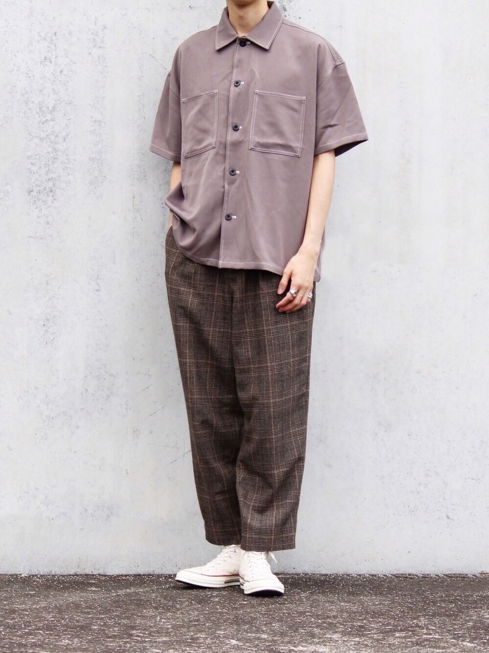 エマクロのステッチシャツ、 これからの時期にかなり使えそう😌 今回はブラウンのワントーンに、 足元で白を取り入れて抜け感を演出しました👌🏻 インスタも良かったら見てください🌸
