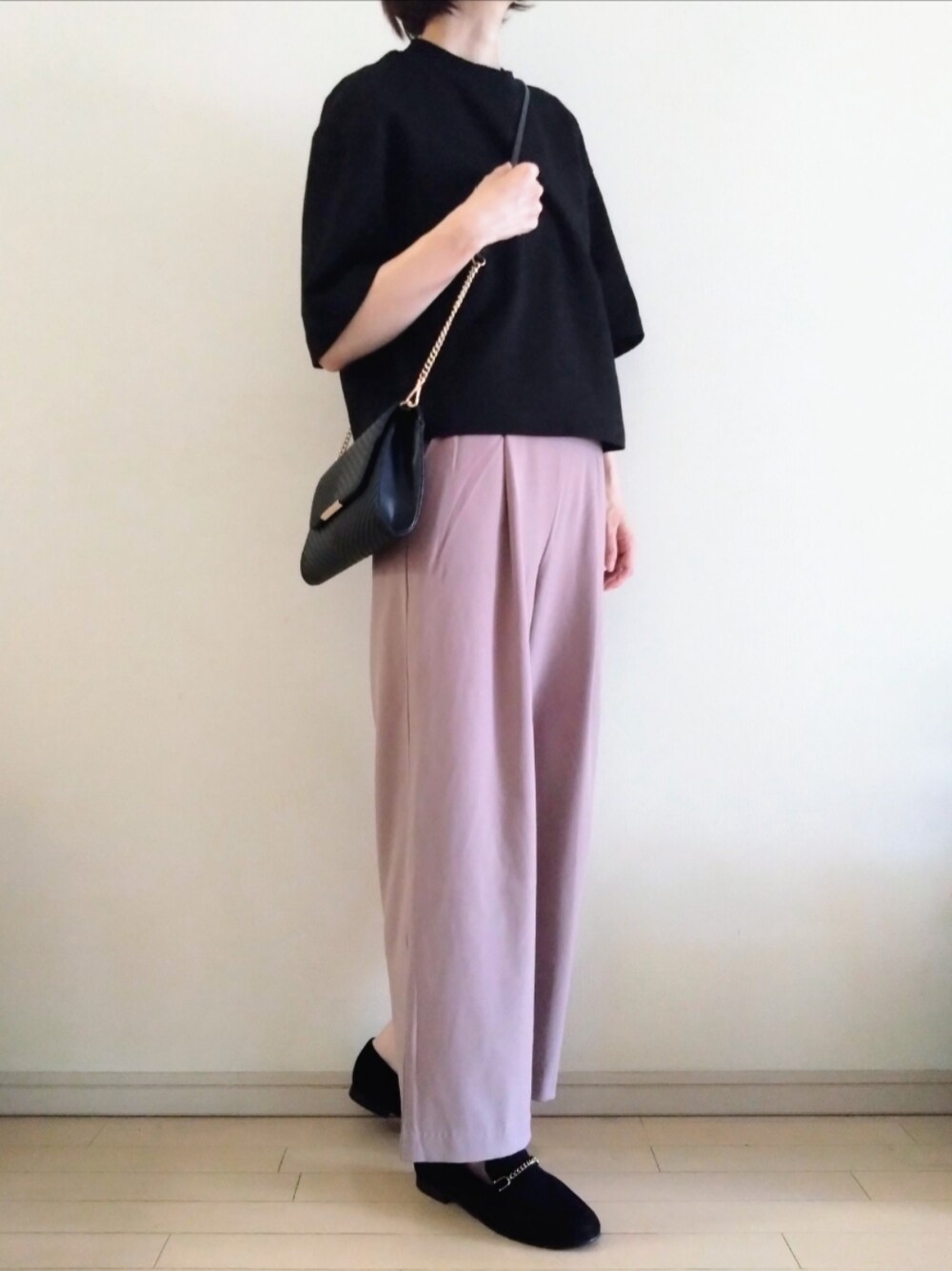 kazaneのTシャツ/カットソー「ハイネッククロップドT(5分袖)カラー:09 BLACK/サイズ:L」を使ったコーディネート
