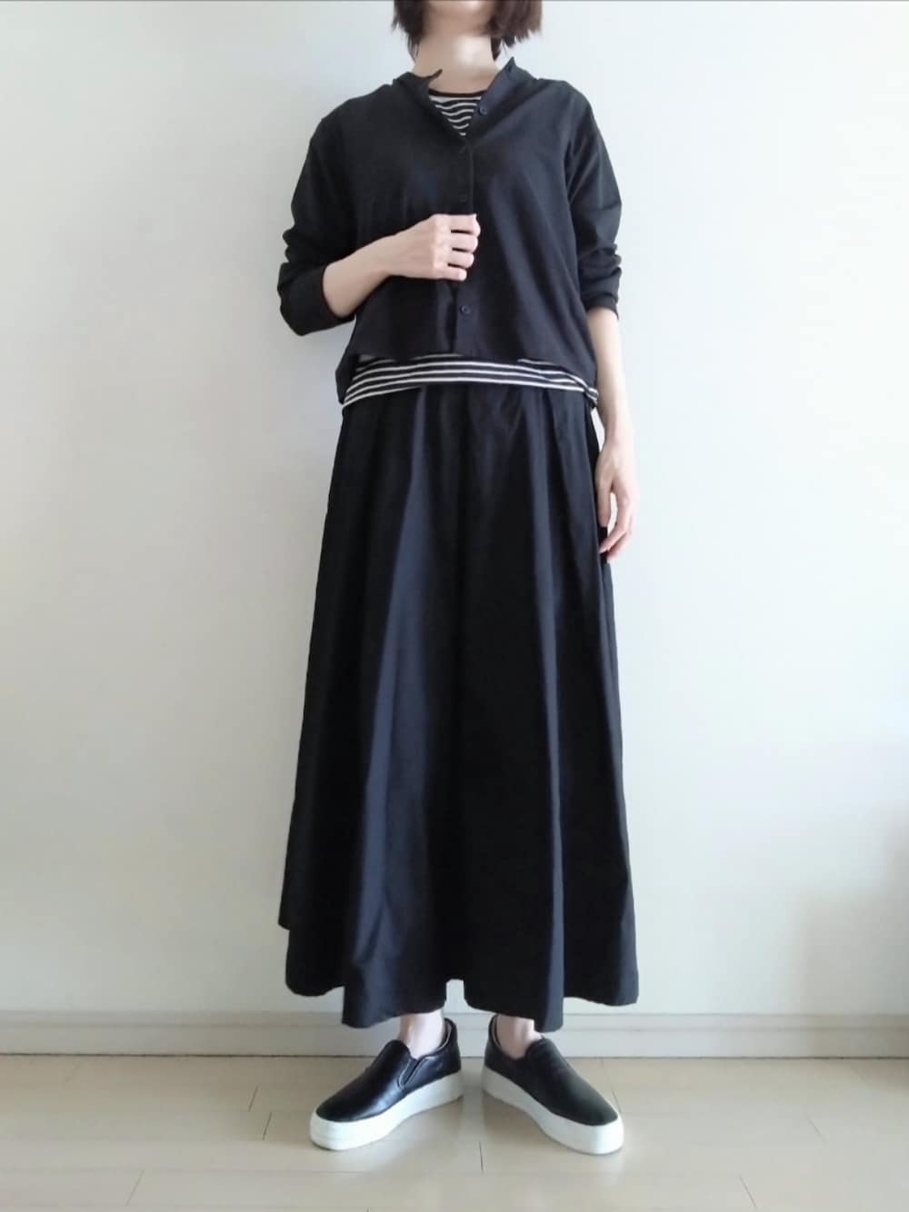 kazaneのカーディガン/ボレロ「UVカットジャージークルーネックカーディガン カラー:09 ブラック/サイズ:L」を使ったコーディネート