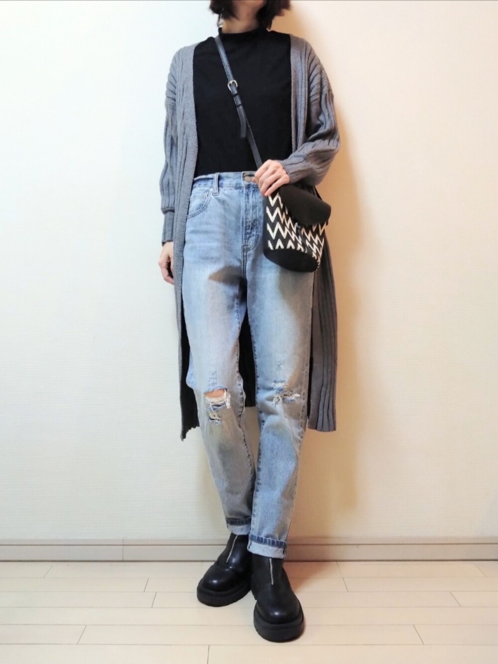 kazaneのデニムパンツ「ダメージテーパード 19AW」を使ったコーディネート