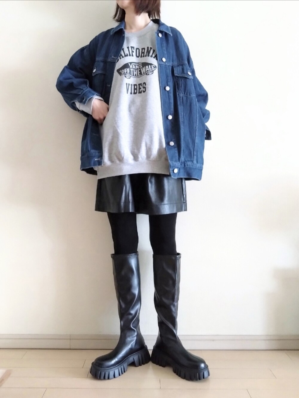 kazaneのデニムジャケット「オーバーサイズデニム&ツイルブルゾン」を使ったコーディネート