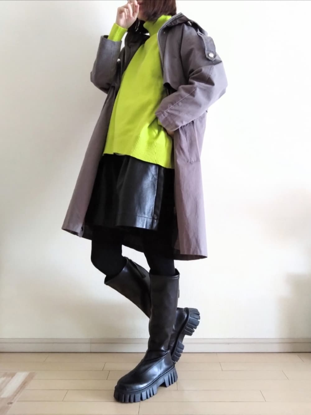 kazaneのトレンチコート「ミリタリージャケット/ミリタリーコート/ウエストマーク/ロング丈トレンチコート」を使ったコーディネート