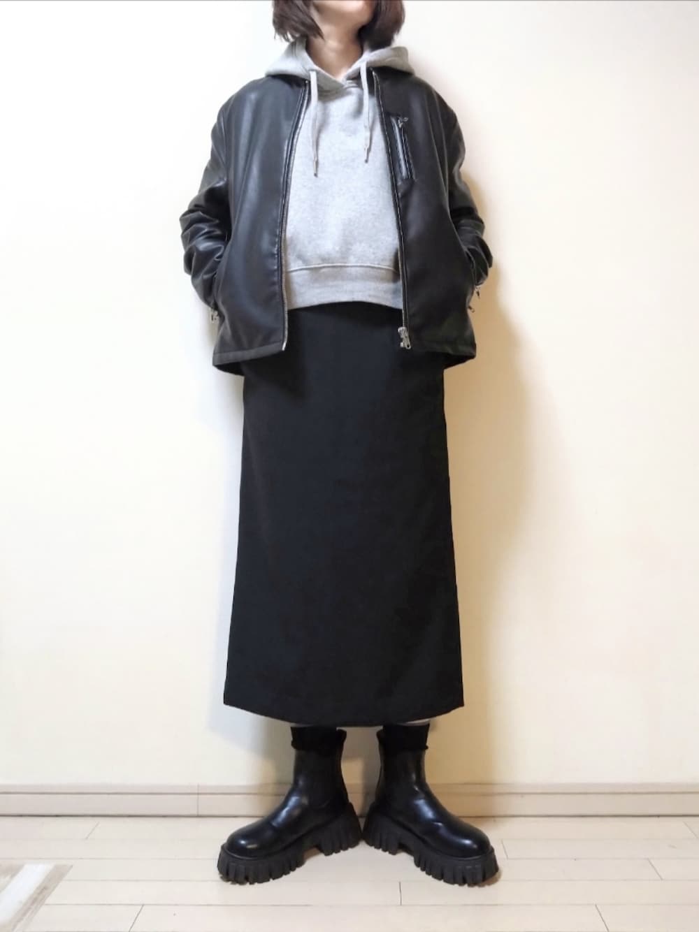 kazaneのライダースジャケット「FAUX LEATHER SINGLE RIDERS カラー:BLK/サイズ:S」を使ったコーディネート