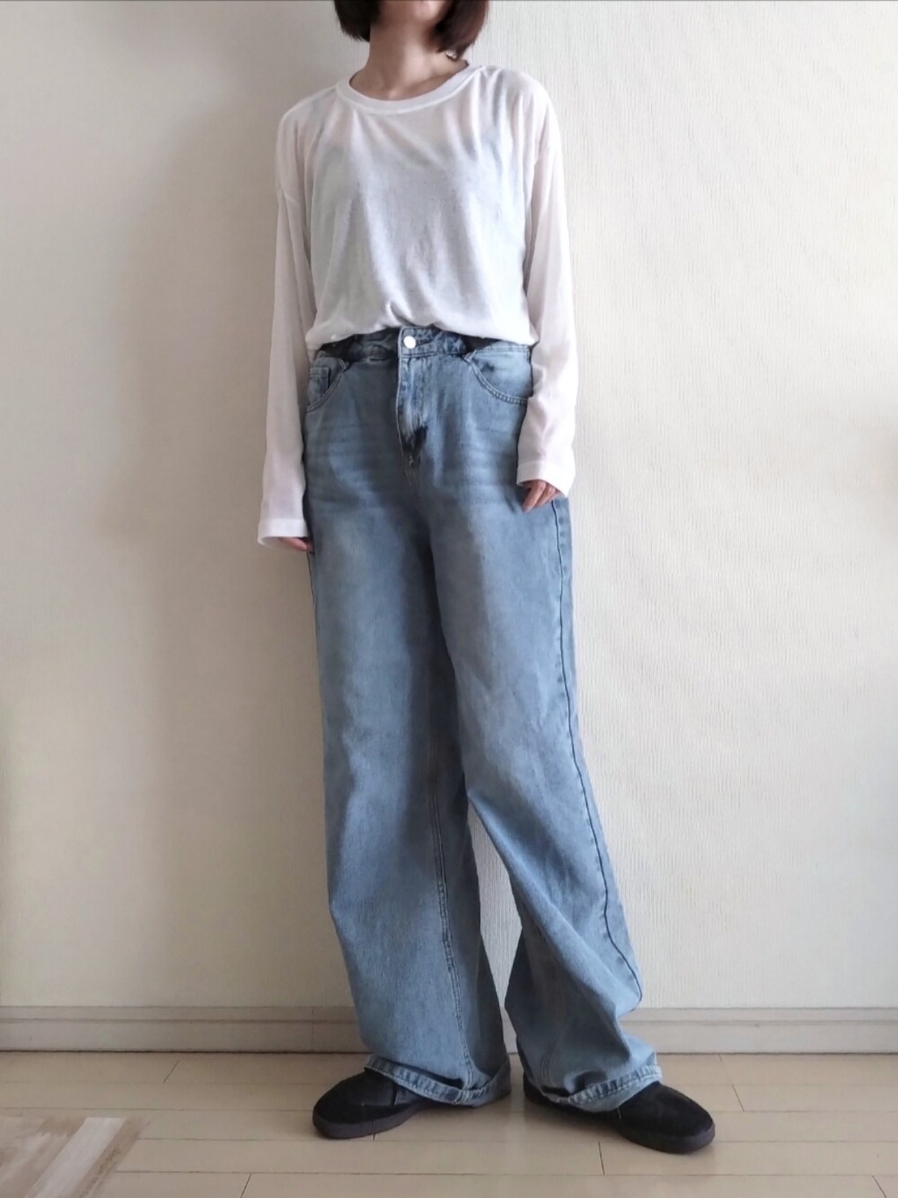 kazaneのTシャツ/カットソー「SHEIN/DAZY ドロップショルダーシアートップス¥804 カラー:ホワイト/サイズ:M」を使ったコーディネート