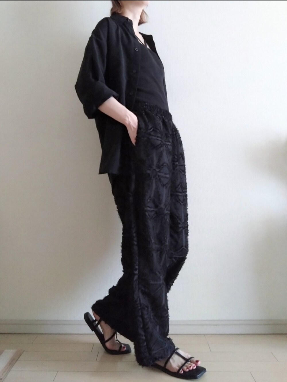 kazaneのサンダル「ナローストラップフラットサンダル カラー:09 BLACK/サイズ:L」を使ったコーディネート